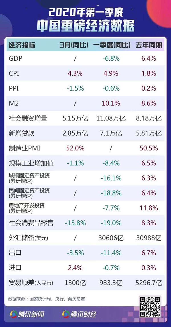 4月17日,國新辦就2020年一季度國民經(jīng)濟(jì)運(yùn)行情況舉行新聞發(fā)布會(huì)。國家統(tǒng)計(jì)局新聞發(fā)言人毛盛勇介紹,初步核算,一季度國內(nèi)生產(chǎn)總值206504億元,按可比價(jià)格計(jì)算,同比下降6.8%。