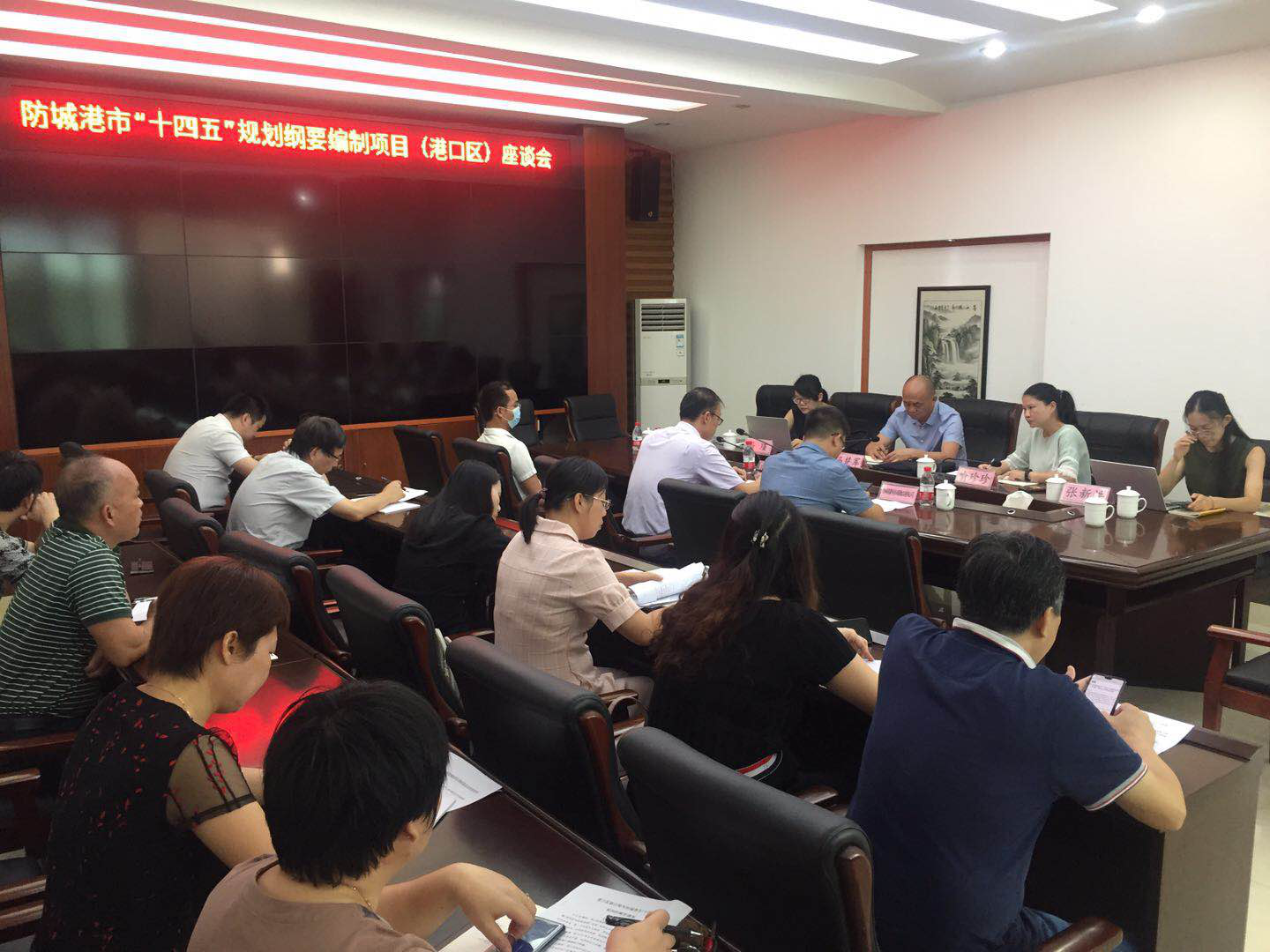 8月20日下午,調(diào)研組與防城港市市政府副秘書長(zhǎng)莫漢賢、市發(fā)改局總經(jīng)濟(jì)師王輝及下轄區(qū)縣和各委辦局主要領(lǐng)導(dǎo)進(jìn)行了座談交流,聽(tīng)取了市領(lǐng)導(dǎo)對(duì)于規(guī)劃的編制要求。