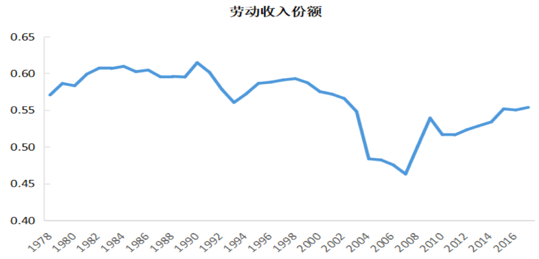 圖6:1978-2017 年我國總體勞動收入份額變動情況