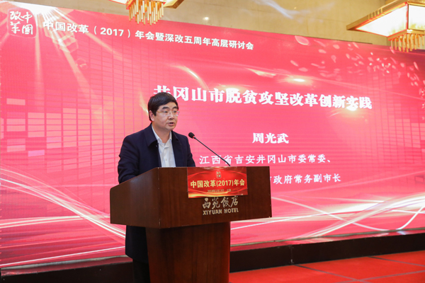江西省吉安井岡山市委常委、常務(wù)副市長周光武介紹,井岡山在脫貧攻堅改革實踐中創(chuàng)新性地提出“三卡”建檔辦法,即,紅卡(特困戶)、藍卡(一般貧困戶)、黃卡(2014年已脫貧貧困戶);創(chuàng)造“12345”精準識別機制;建立了長效脫貧機制,即,創(chuàng)新干部幫扶機制,解決缺力量的問題,創(chuàng)新基金投入機制解決缺資金的問題;創(chuàng)新考核導(dǎo)向機制給足力的問題。