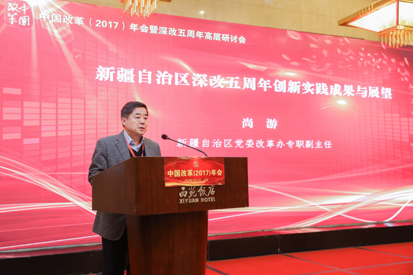 新疆自治區(qū)黨委改革辦專職副主任尚游介紹了新疆的特色改革領(lǐng)域:在機構(gòu)設(shè)置上,針對新疆穩(wěn)定問題設(shè)立社會治理體制改革專項小組;多措并舉推進民族團結(jié),建立了民族團結(jié)一家親長效機制,豐富了民族團結(jié)的載體和平臺;創(chuàng)新宗教事務(wù)教育管理服務(wù)辦法,積極推進央企屬地建設(shè);探索政府主導(dǎo)轉(zhuǎn)移就業(yè)模式;大力推進鄉(xiāng)鎮(zhèn)站所管理體制改革。
