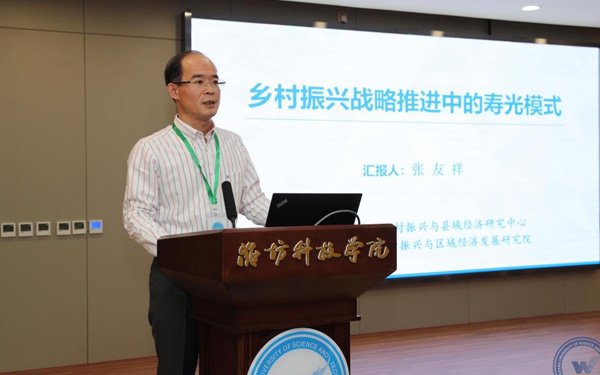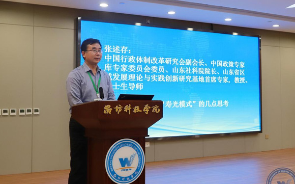 新時(shí)代鄉(xiāng)村振興與區(qū)域經(jīng)濟(jì)發(fā)展研究院執(zhí)行院長(zhǎng)、經(jīng)濟(jì)管理學(xué)部主任、教授、博士生導(dǎo)師張友祥代表“壽光模式”研究課題組從“壽光模式”的內(nèi)涵和特征、形成機(jī)制、實(shí)踐價(jià)值等方面作了研究成果匯報(bào)。
