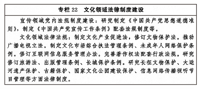 ——中國特色社會(huì)主義文化制度更加完善,文化法律法規(guī)體系和政策體系更加健全,文化治理效能進(jìn)一步提升。