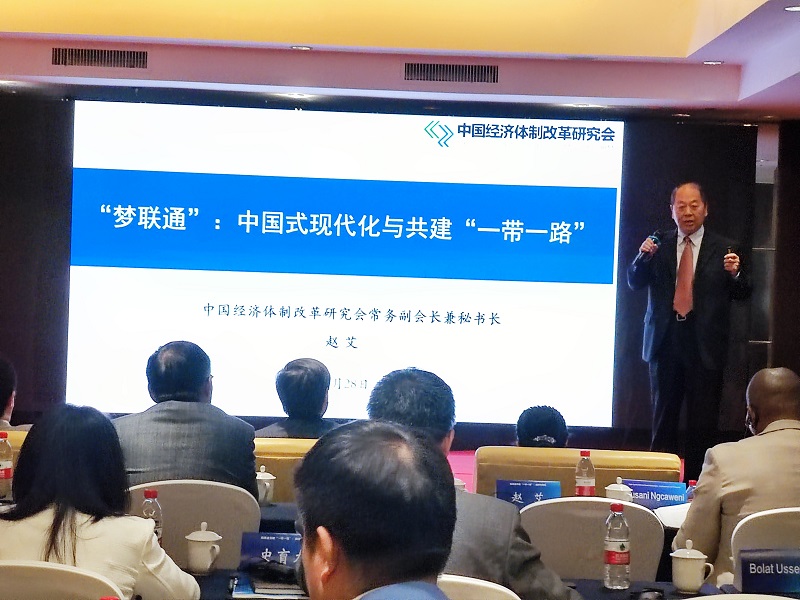 2023年10月28日,我會常務(wù)副會長兼秘書長趙艾應(yīng)邀出席在北京召開的“高質(zhì)量共建‘一帶一路’:成就與展望”國際學(xué)術(shù)研討會,并作題為《“夢聯(lián)通”:中國式現(xiàn)代化與共建“一帶一路”》的主旨演講。