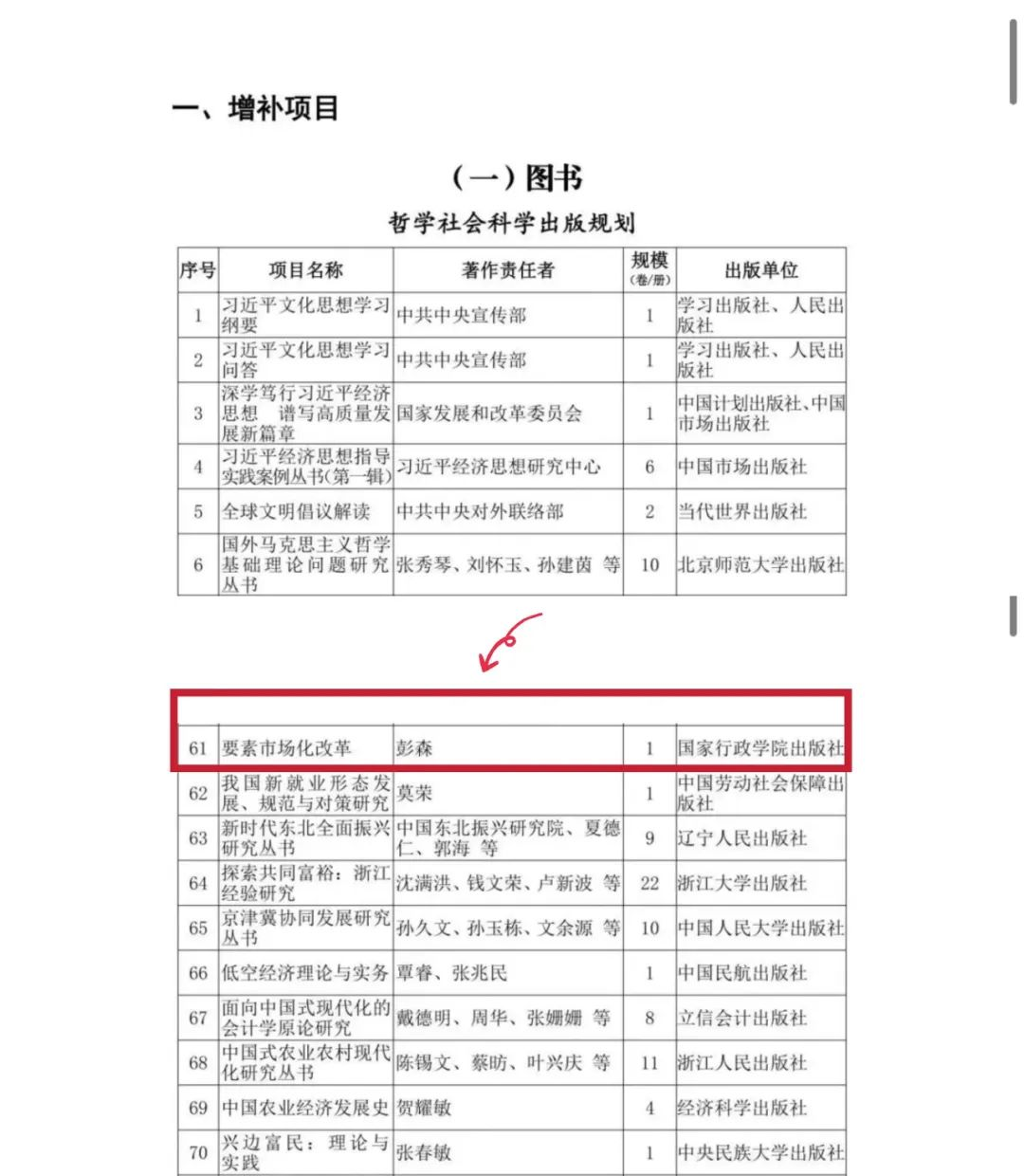 2024年8月29日,國家新聞出版署公布《“十四五”國家重點(diǎn)出版物出版規(guī)劃調(diào)整情況》,確定“十四五”國家重點(diǎn)出版物出版規(guī)劃增補(bǔ)項(xiàng)目590個(gè),其中圖書出版項(xiàng)目524個(gè)、音像電子出版項(xiàng)目59個(gè)、數(shù)字出版項(xiàng)目7個(gè)。我會(huì)彭森會(huì)長主編的《要素市場化改革》入選“哲學(xué)社會(huì)科學(xué)出版規(guī)劃”項(xiàng)目。