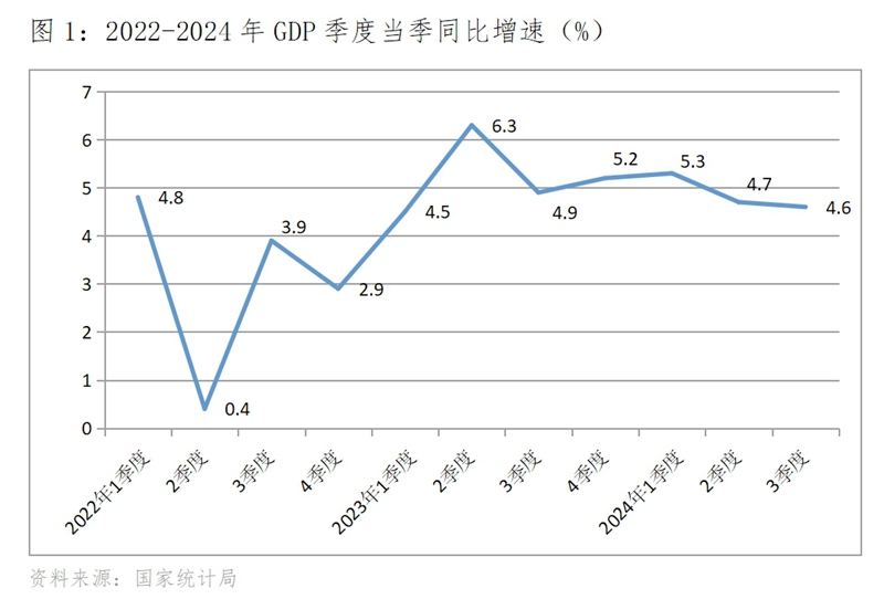 (三)增速上年同期基數(shù)較高。上年四季度GDP增速是自2022年以來季度GDP第二快的增速,同比增長(zhǎng)5.2%,第一快的增速是上年二季度的增速,增長(zhǎng)6.3%。由于上年二季度增速基數(shù)較高,今年二季度GDP增速為4.7%,回落了1.6個(gè)百分點(diǎn)。而如果今年四季度GDP增長(zhǎng)5.5%,意味著GDP增速比上年四季度回升了0.3個(gè)百分點(diǎn)。從這一對(duì)比分析中就可看出,要實(shí)現(xiàn)今年四季度GDP增長(zhǎng)5.5%還面臨著基數(shù)較高因素的影響。