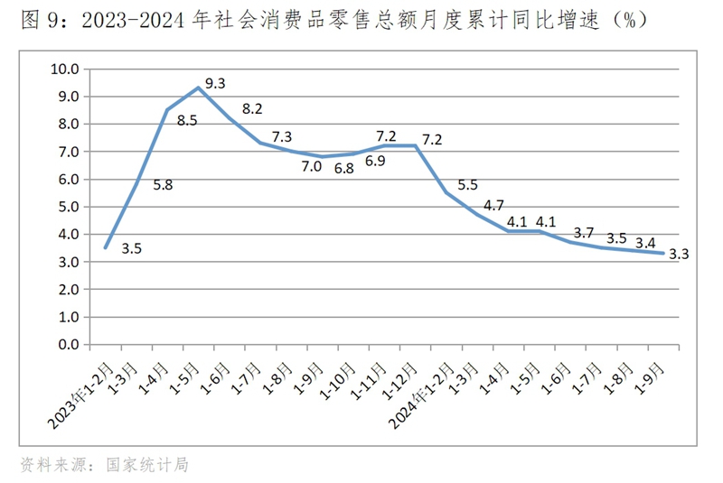 受國(guó)內(nèi)需求不足、社會(huì)預(yù)期偏弱以及國(guó)內(nèi)外不穩(wěn)定不確定等因素的影響,從月度數(shù)據(jù)增速變化動(dòng)態(tài)看,工業(yè)、投資、零售、出口和財(cái)政支出增速總體呈現(xiàn)出回落的態(tài)勢(shì),整體經(jīng)濟(jì)增長(zhǎng)動(dòng)能在減弱,需要值得關(guān)注的是大部分指標(biāo)增速9月份出現(xiàn)了回升。