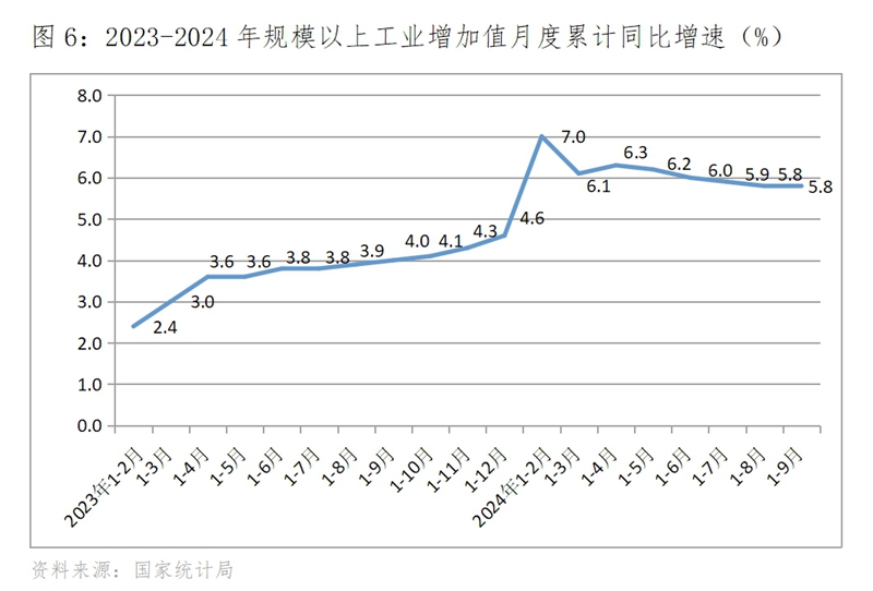 隨著一系列宏觀調(diào)控政策的貫徹落實(shí),包括新增地方政府專項(xiàng)債券、增發(fā)超長(zhǎng)期特別國(guó)債、大規(guī)模的設(shè)備更新、消費(fèi)品的以舊換新、繼續(xù)減稅降費(fèi)、降準(zhǔn)降息、放寬住房購(gòu)買限制等政策措施,與上年同期對(duì)比,今年以來工業(yè)、投資和出口增速回升,零售和財(cái)政支出增速回落。