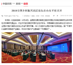 10月18日,中國(guó)經(jīng)濟(jì)體制改革研究會(huì)、中國(guó)農(nóng)業(yè)經(jīng)濟(jì)學(xué)會(huì)、中國(guó)經(jīng)濟(jì)改革研究基金會(huì)、中國(guó)城鎮(zhèn)化促進(jìn)會(huì)聯(lián)合主辦的2019全國(guó)鄉(xiāng)村振興高層論壇在平度市開幕,開啟了以“推動(dòng)農(nóng)村產(chǎn)業(yè)融合 夯實(shí)振興產(chǎn)業(yè)基礎(chǔ)”為主題的大討論。論壇上,中國(guó)經(jīng)濟(jì)體制改革研究會(huì)宣布把平度市列為博士后科研工作站調(diào)研基地,并授予平度“中國(guó)經(jīng)濟(jì)體制改革研究會(huì)博士后科研工作站調(diào)研基地”標(biāo)牌。